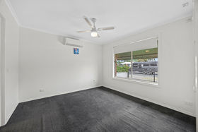 - Main living zone with window seat, ceiling fan and split-system heating and cooling.